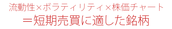 この3つが、掛け算のように組み合わさることで、短期売買に適した銘柄を選べるようになれるのです。