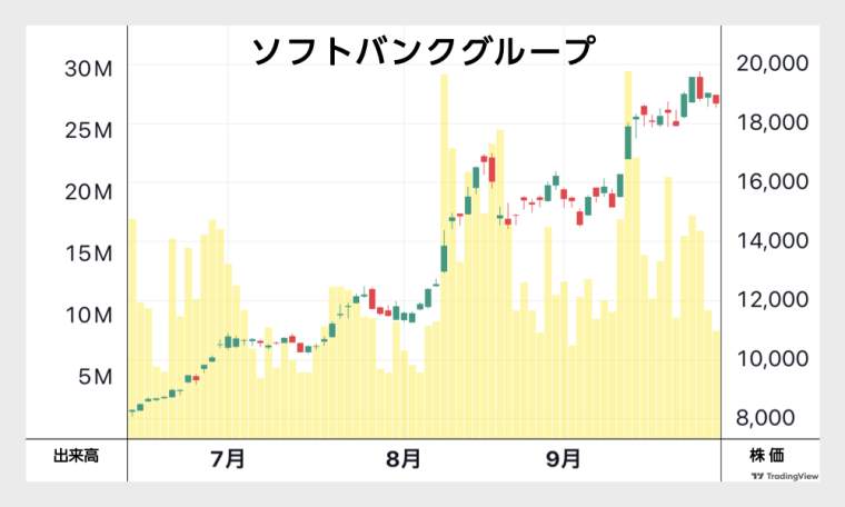 ソフトバンクグループ(9984)、アドバンテスト(6857)を筆頭に上昇しました。