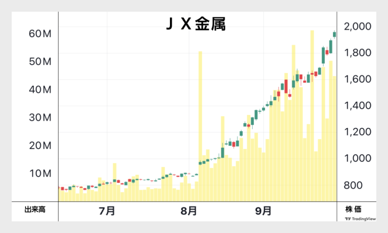 【第18位】JX金属<5016>・・・・・・・・・・・+43.7%
