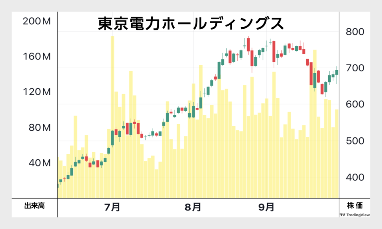 半導体関連の陰に隠れてしまっていますが、大企業であるにもかかわらず大きな値動きも伴っており、引き続き監視したほうがいいテーマです。