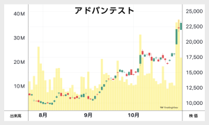 【第2位】アドバンテスト<6857> ・・・・・・・・・・・・・・ 6.88兆円(先月3.54兆円)/値上がり率15位:+57.9%(14,650円→23,135円)