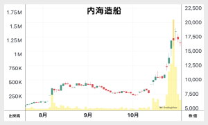 【第2位】内海造船<7018> ・・・・・・ +114.0%(7,680円→16,440円)