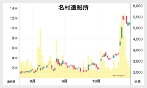 【第19位】名村造船所<7014> ・・・・ +53.7%( 3,415円→5,250円)