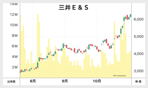【第28位】三井E&S<7003> ・・・・ +40.9%(4,475円→6,306円)