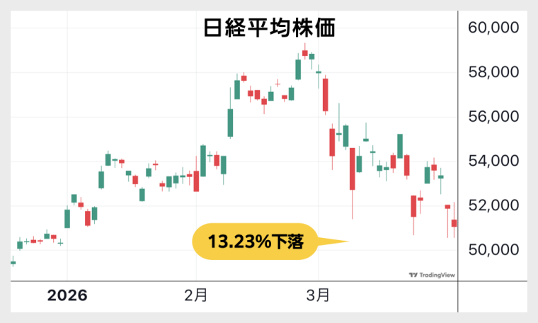 日経平均株価58,850円51,063円-13.23%
