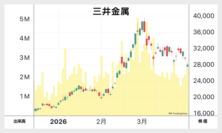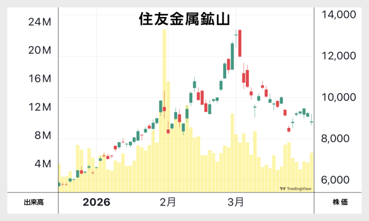同じように、安全資産の金と言えば“ベッシ”(住友金属鉱山の通称。かつての別子銅山から)ですが、こちらも資金が入ってきたのは一時的でした。