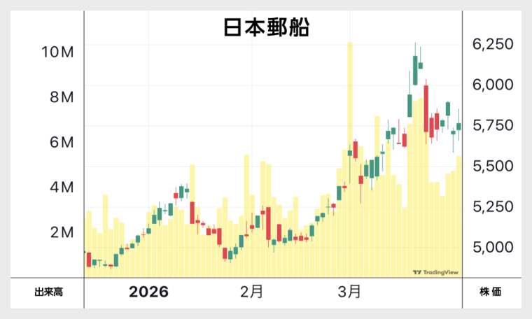 【45】日本郵船<9101>6674億円(3259億円)